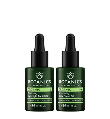 This Botanics bundle provides comprehensive care with two distinct, 100% organic facial oils. The set features a Nourishing Daily Facial Oil and a Restoring Overnight Facial Oil for 24-hour skin support. Both 25ml bottles utilise a practical dropper for controlled and hygienic application every time. This pairing offers a complete routine using the power of plants for daily maintenance and nightly skin rejuvenation.