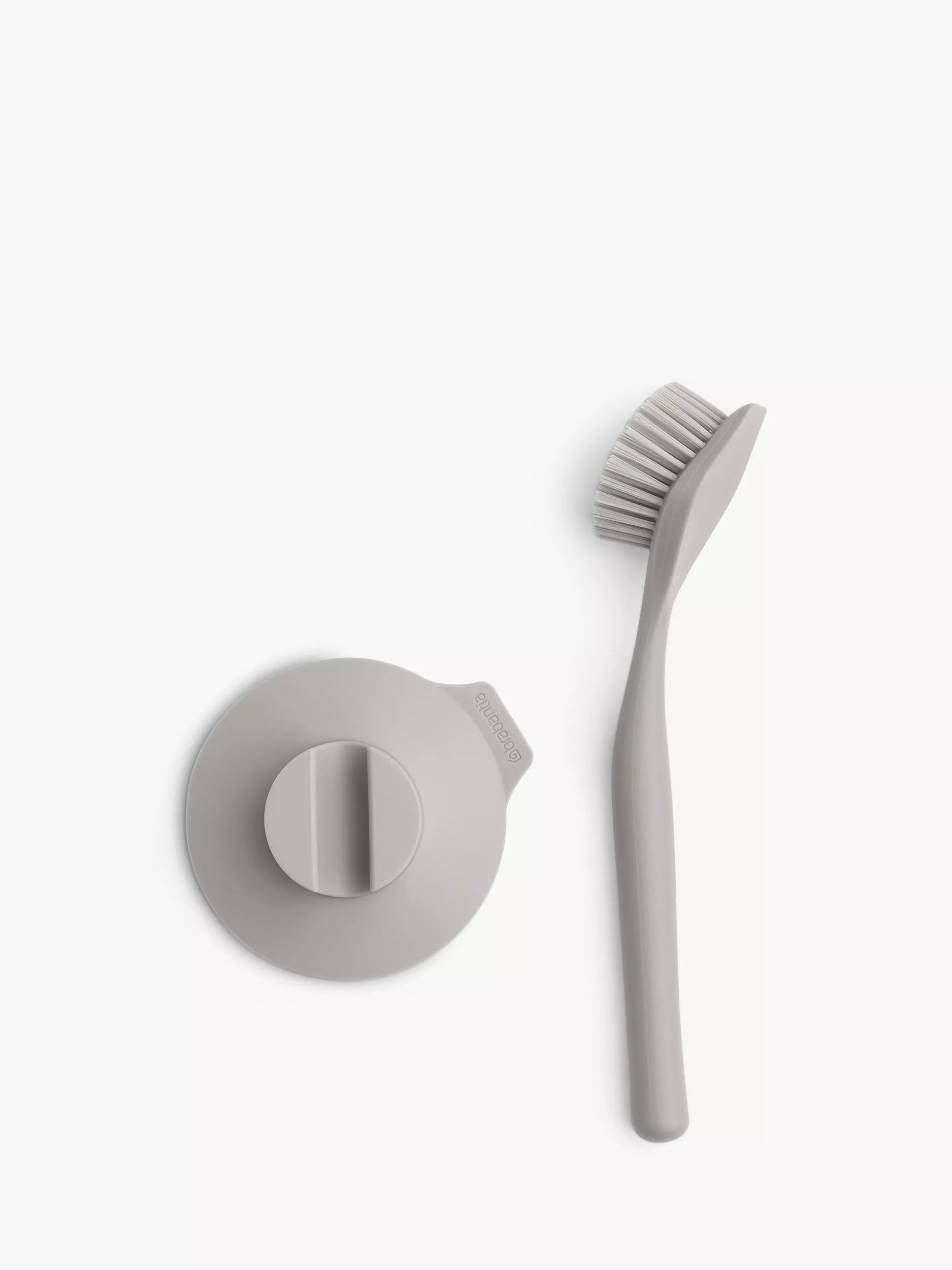 This sturdy dish brush has a secure grip, a built-in scraper, and a suction cup holder to keep it ready for use right in your sink.