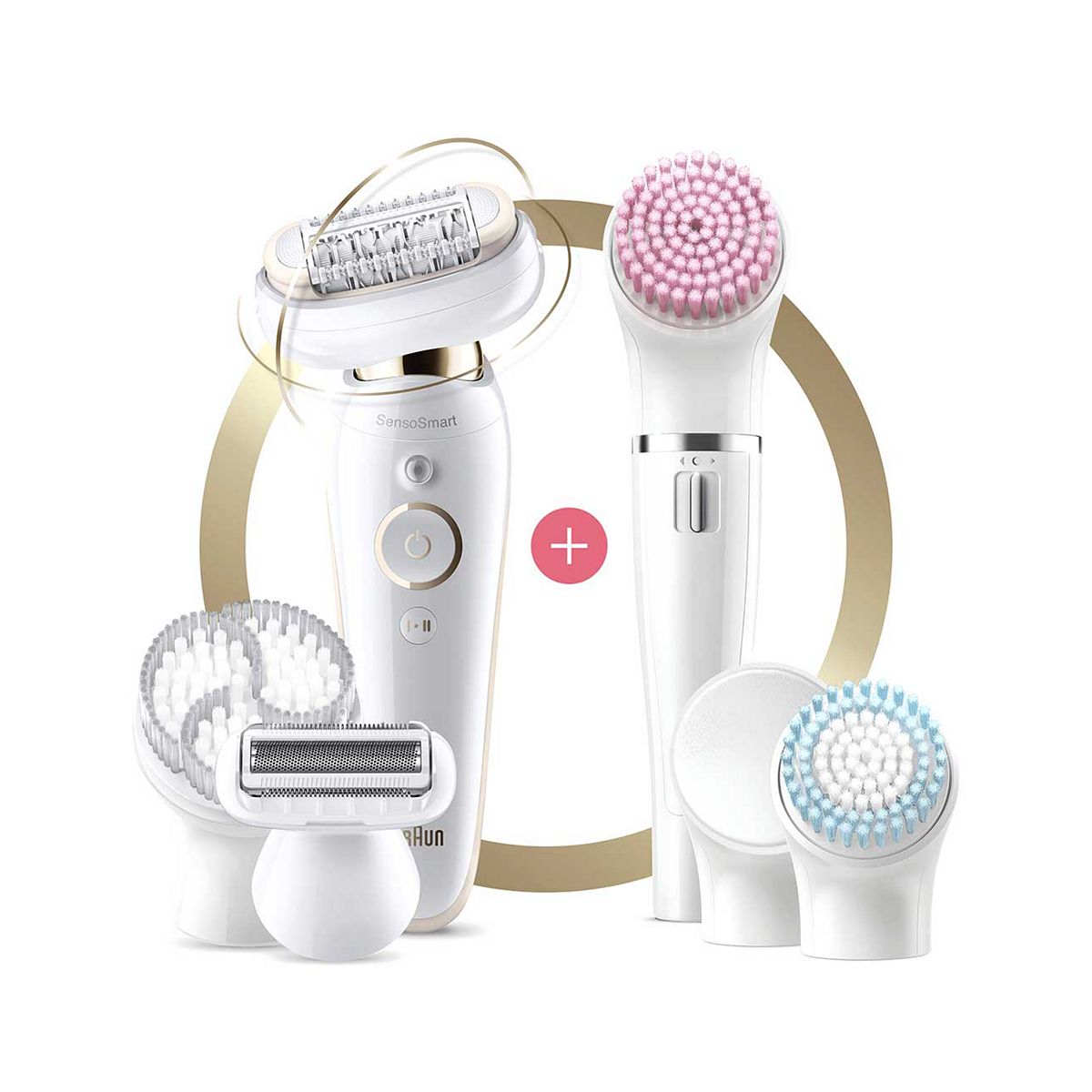 The Braun Silk-épil 9 Flex 9-100 beauty set is the world’s 1st epilator for women with a fully flexible head, for effortless hair removal. Enjoy weeks of salon-smooth skin thanks to Micro-Grip technology, and the 40% wider head that removes even the shortest hairs, down to 0.5mm. The beauty set includes additional attachments so you can shave, trim, cleanse and exfoliate, plus FaceSpa with facial brush for sensitive skin, and a beauty sponge to massage cream into the skin.