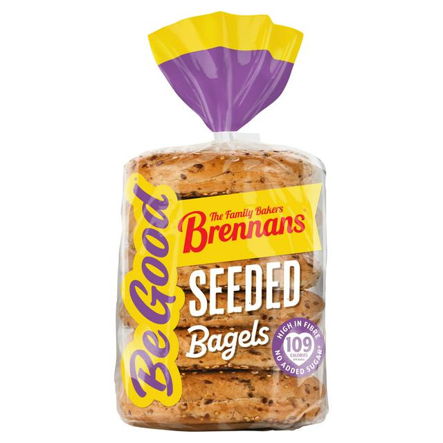 Product details Description 6 Be Good Seeded Bagels The family baker's High in Fibre 109 Calories Per Bagel Source of Vitamin D Guranteed Irish Suitable for Vegetarians No Added Sugar* *Contains Naturally Occurring Sugars Green Dot Mobius Loop Nutrition Table of Nutritional Information This pack contains 6 Servings Per 100g... Read More