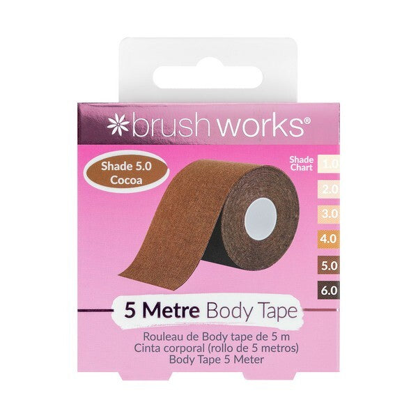 Achieve instant lift and support using the Brushworks Body Tape in Shade 5.0 Cocoa. This inclusive range is developed with comfortable, ultrasoft material for extended wear throughout the day. The tape stretches and adapts seamlessly to your body's contours, providing reliable shaping and hold.