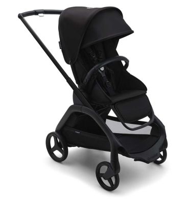 The Bugaboo Dragonfly pushchair in black midnight offers smooth navigation for metropolitan environments. This modern stroller combines a sleek aesthetic with practical functionality designed for daily use. Its streamlined frame supports easy manoeuvrability on busy pavements and within shops.