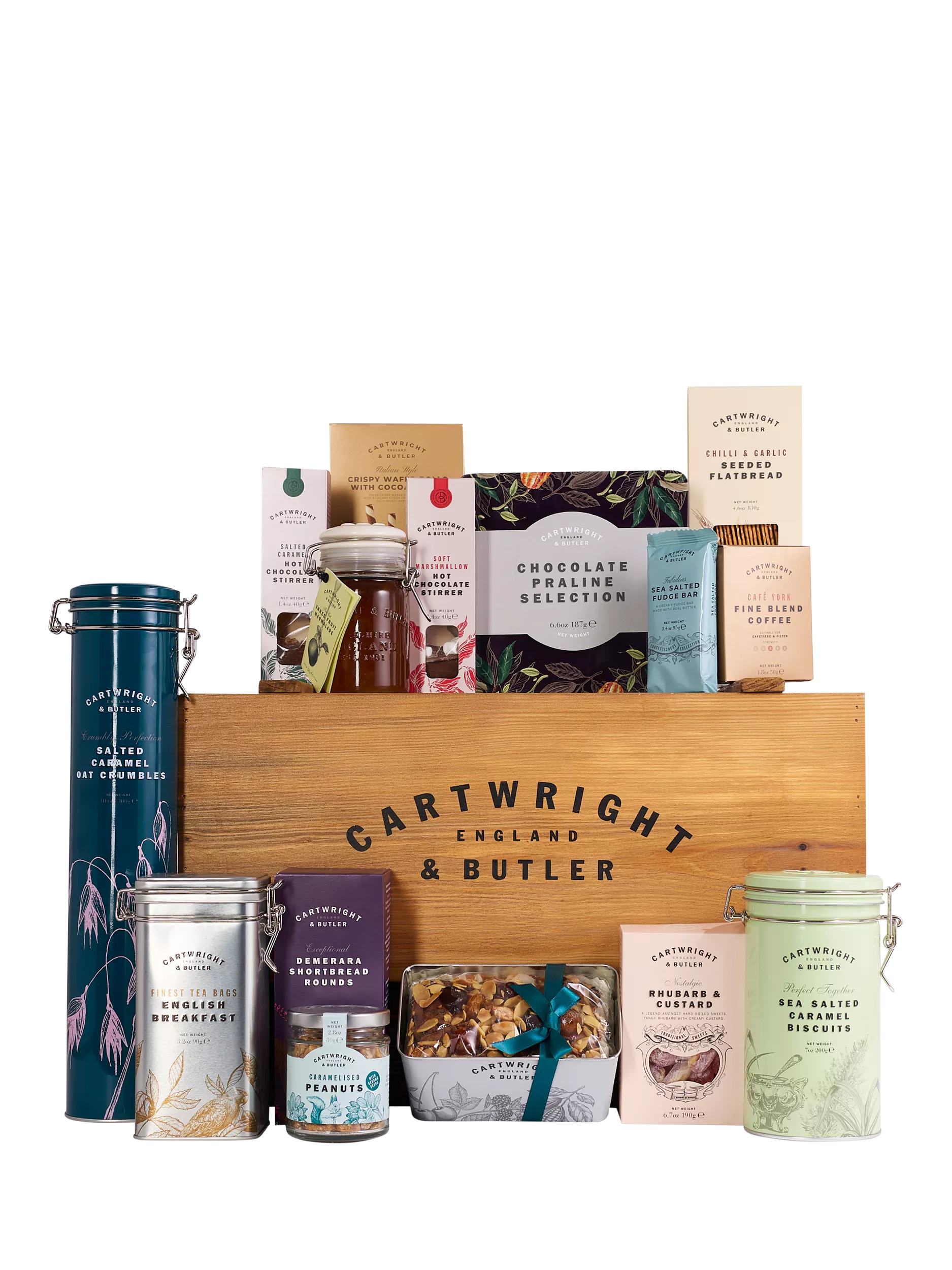 The Swaledale Luxury Wooden Crate Hamper is one of Cartwright and Butler's most popular hampers. It includes a huge range of exquisite Cartwright and Butler treats and is famous for the large rustic wooden crate that is stuffed with delicious treats. Upon opening the Swaledale Luxury Crate you will find one of the most impressive assortments of luxury treats your eyes have ever set upon, leaving you with the difficult decision of which item you will explore first.