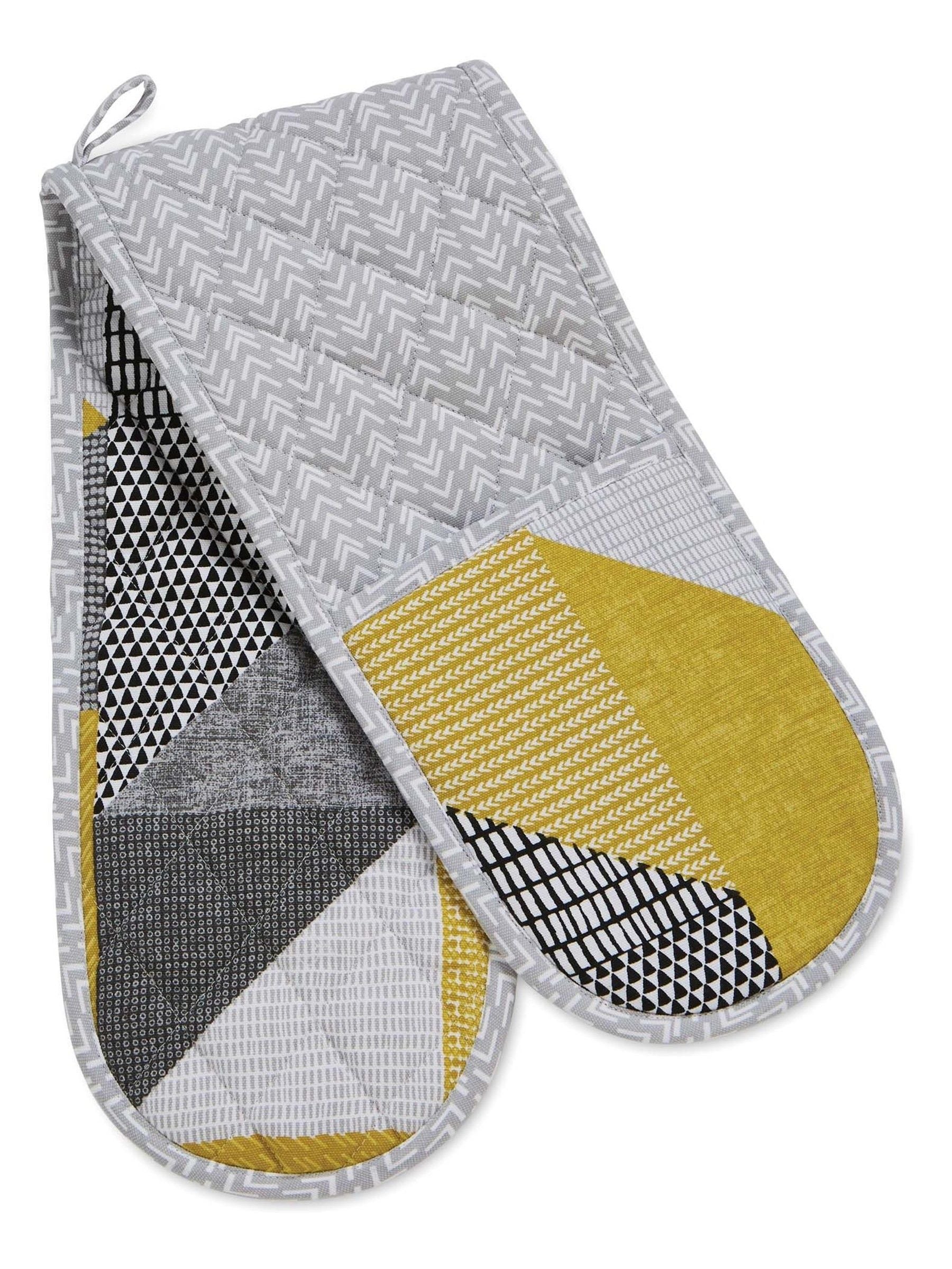 Catherine Lansfield Yellow Larsson Geo Double Oven Glove
