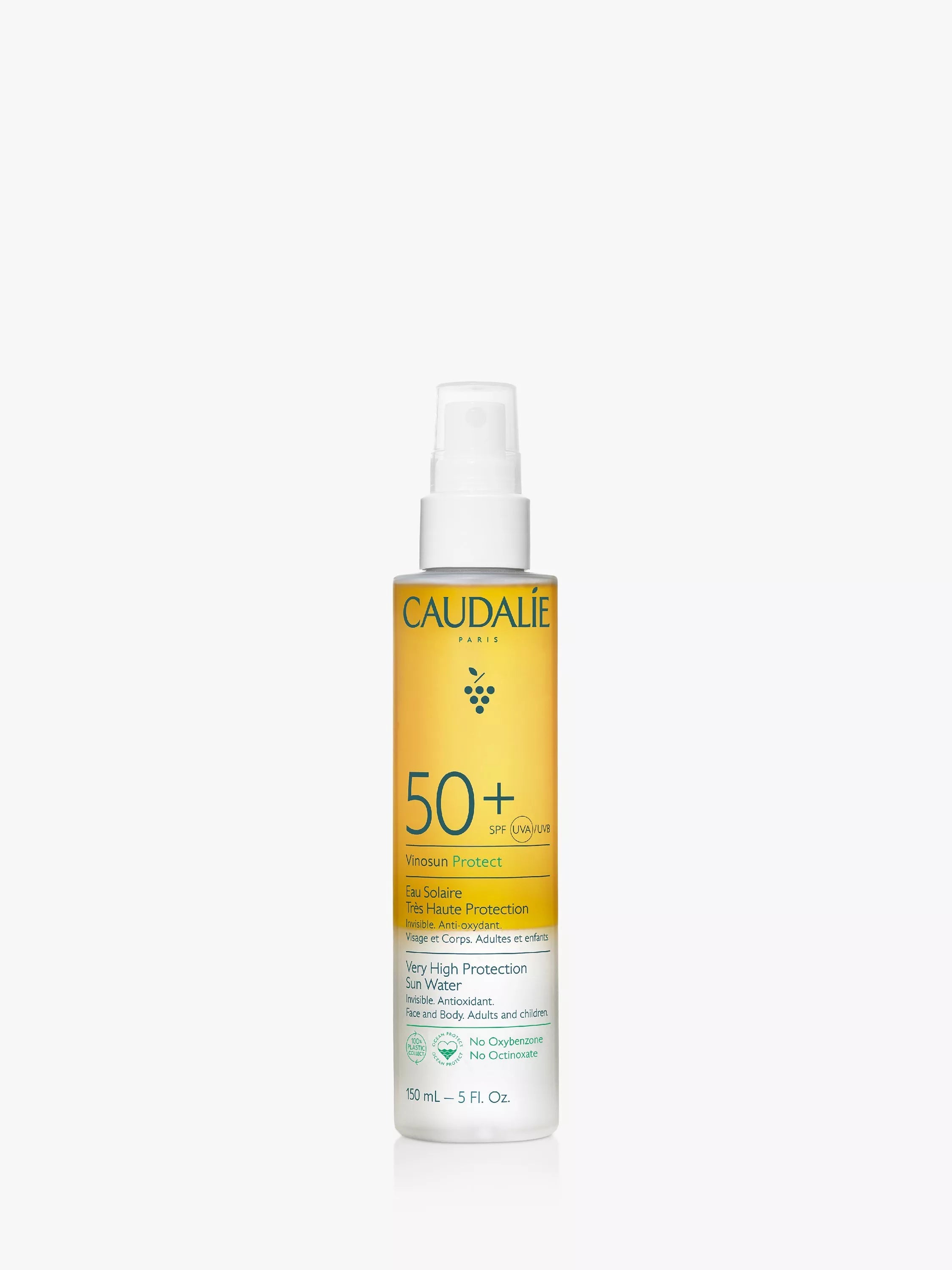Caudalie's Very High Protection Sun Water SPF50+ effectively protects the face and body from UVA/UVB rays while providing vital antioxidant action, suitable for the most sensitive skin.