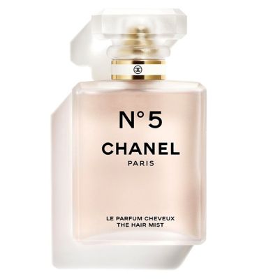 CHANEL N°5 The Hair Mist delivers a sheer veil of the signature fragrance for your hair. This delicate scented spray is housed within a distinctive frosted, transparent version of the iconic bottle. Its composition includes active ingredients derived from both rose and jasmine extracts to enhance your look.