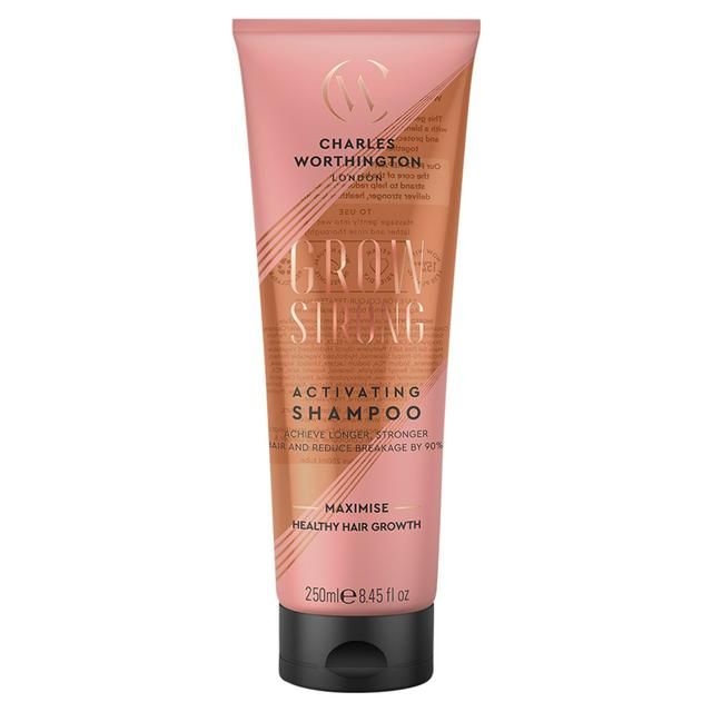 Charles Worthington Grow Strong Activating Shampoo 250ml helps maintain an optimum scalp condition supporting healthy hair growth. This gentle cleanser is specifically formulated to reduce hair breakage significantly, claiming up to a 90% reduction. It combines beneficial extracts and proteins to improve overall hair resilience.