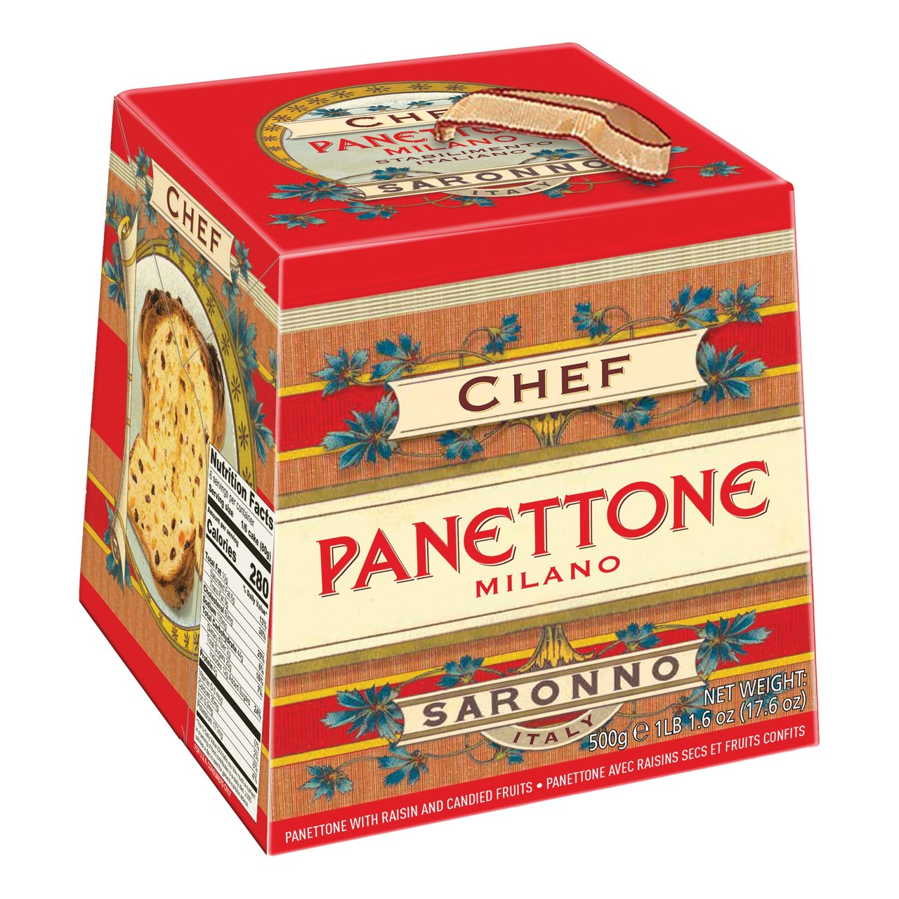 Saronno presents its Chef Panettone Milano, a traditional, naturally leavened oven-baked cake imported from Italy. This 500g confection is richly layered with high-quality raisins and sweet candied fruit pieces throughout its airy structure. It represents an authentic taste of Milanese holiday baking traditions, confirmed by its 'Panettone Milano' designation.