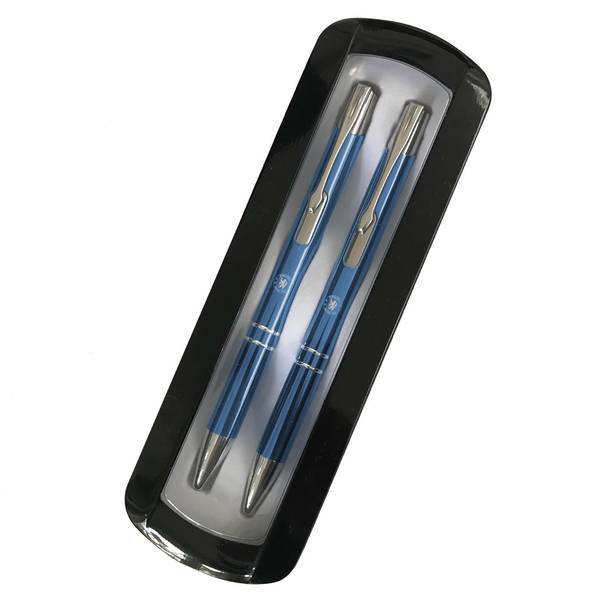 Display your team allegiance with the officially licensed Chelsea FC Crest Pen & Pencil Set. This writing tool collection is supplied ready for gifting inside dedicated presentation packaging. It is a straightforward way to support the club daily.