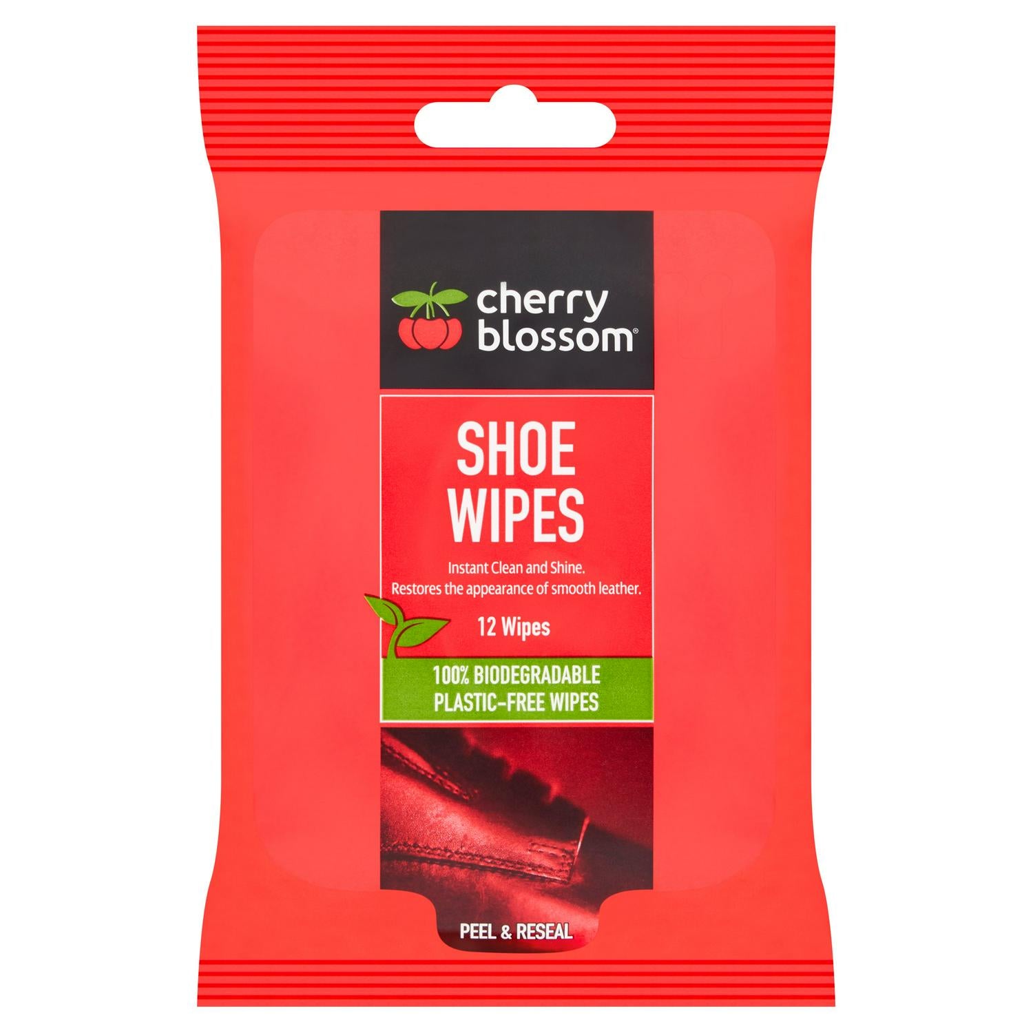 These convenient Cherry Blossom Shoe Wipes restore the appearance of smooth leather footwear and accessories instantly when you are away from home. Packaged for on-the-go use, these easy-to-use wipes clean and shine your shoes, quickly restoring confidence to your step. This product helps maintain your favourite items while you travel or commute.