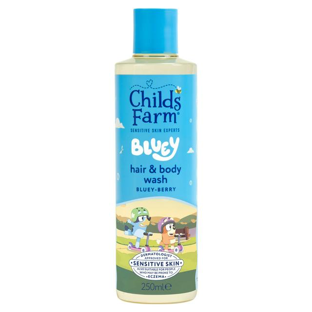 Childs Farm Bluey-berry Hair & Body Wash cleans little adventurers from head-to-toe, adding fun to bath time with a juicy berry fragrance. This formulation is dermatologist approved for sensitive skin and suitable for those prone to eczema, ensuring a comfortable wash experience.