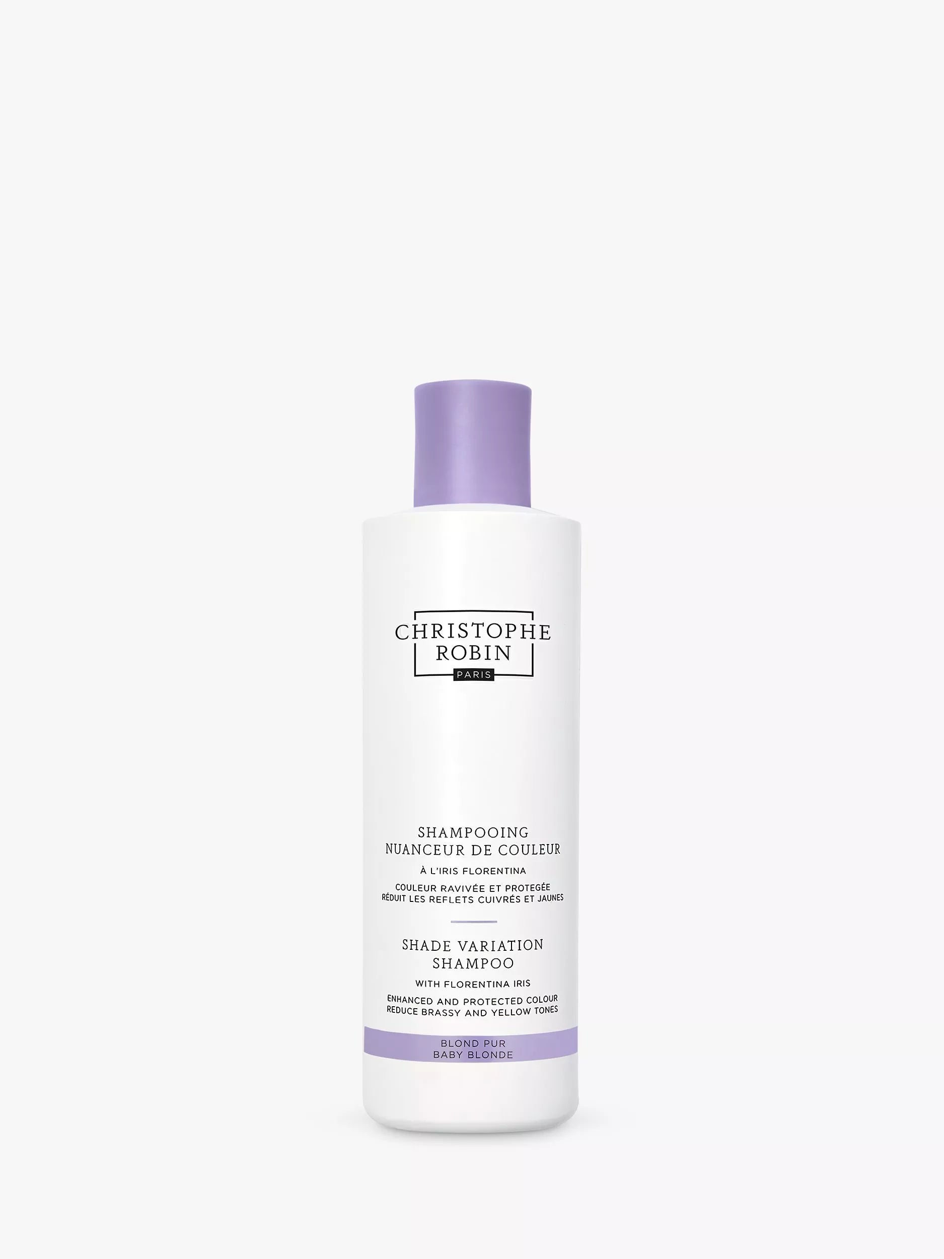 Florentina iris and a blend of violet pigments colour-corrects unwanted brassy and yellow tones while almond butter, rich in omega-6, provides visible shine and a vitamin-rich conditioning complex leaves lengths feeling nourished.