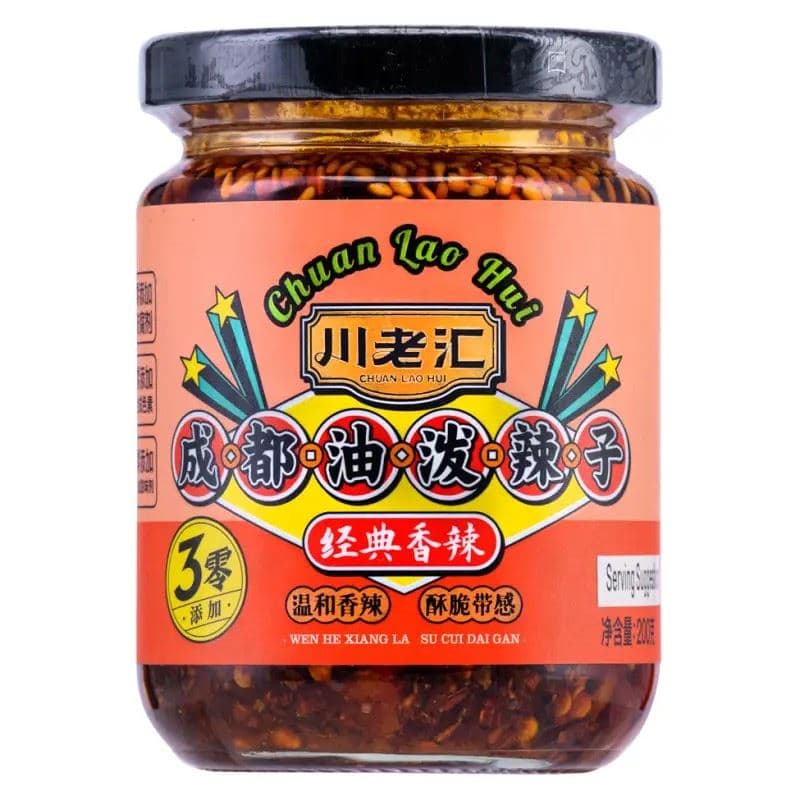 Experience the explosive flavour of Chuan Lao Hui Chengdu Oil Chilli, a fiery Sichuan condiment perfect for adding authentic spice to your favourite dishes. This vibrant chilli mix is ideal for elevating noodles, stir-fries, and more, bringing a taste of Sichuan cuisine to your kitchen.