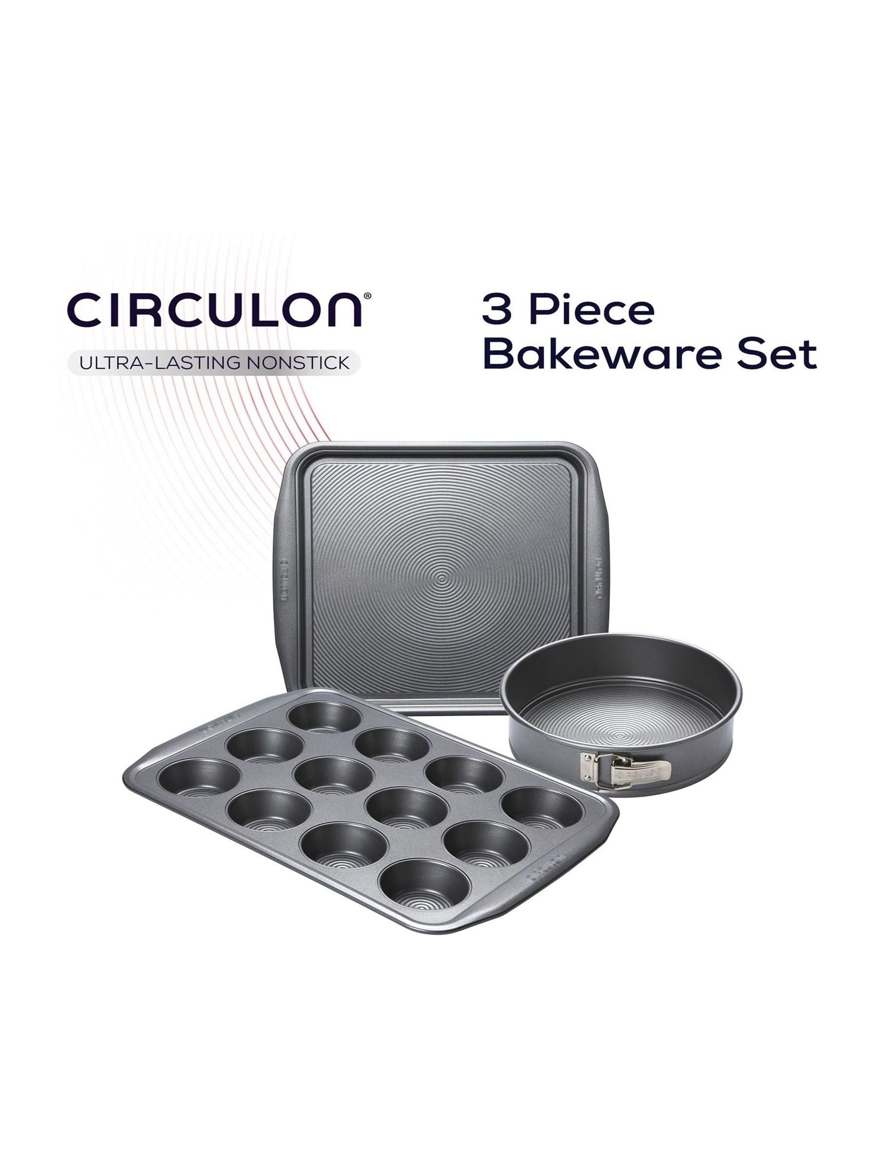 BAKING SET INCLUDES - 3 piece baking set with 30cm square baking tray, 12 cup muffin tin and 25cm Spring form cake tin TOTAL NON STICK SYSTEM - This bakeware set features Circulon's total non stick technology for easy food release and effortless cleaning. The hi-low groove system provides unrivalled... Read More