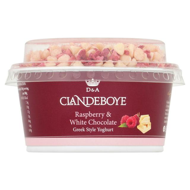 Enjoy this Clandeboye authentically strained Greek Style Raspberry Yoghurt for a satisfying treat. This 150g portion is layered with real white chocolate pieces and dried raspberries for added texture. The dense, rich texture is characteristic of traditional straining methods used for this style of product. It offers a balanced indulgence suitable for a single serving.