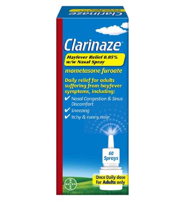 Clarinaze Hayfever Relief 0.05% w/w Nasal spray relieves the symptoms of hayfever, including sneezing, itchy and runny nose, nasal congestion and sinus discomfort.