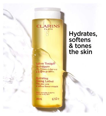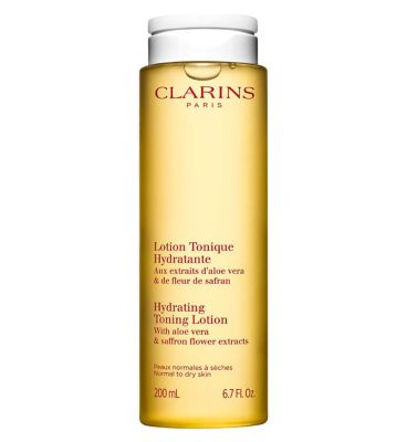 Clarins Hydrating Toning Lotion is formulated specifically to balance normal to dry skin types after cleansing. This aromatic floral toner works to enhance the skin's natural capacity to retain moisture while gently removing any cleanser residue left behind. The lightweight formula leaves the skin feeling refreshed and prepared for subsequent treatments.