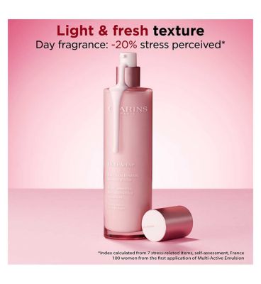 The Clarins Multi-Active Emulsion is formulated to help de-stress your skin from the effects of a busy lifestyle. This range is clinically proven to fight the visible signs of stress-ageing, which commonly impact texture and tone. The advanced formulation targets multiple concerns linked to daily pressures, including dehydration and fatigue.
