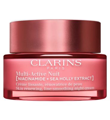 Clarins Multi-Active Night Cream works to counteract the visible effects of stress ageing on your complexion. A busy lifestyle can negatively impact skin firmness, pore size, and hydration levels. This night cream integrates the targeted Clarins Skin Charger Complex to promote overnight restoration.