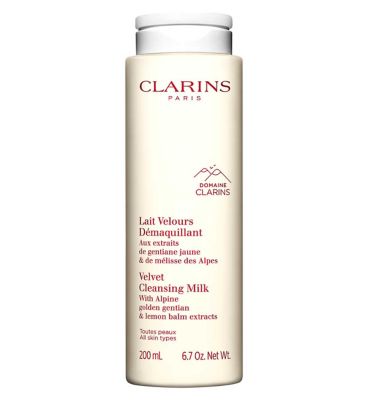 Read MoreClarins range of Cleansers are tailored to your texture preference. The Velvet Cleansing Milk is a creamy milk for those who are looking for a soft, enveloping and comforting, gentle texture to remove light make up. The non-greasy formula has a floral scent and contains a Gentle Complex, harvested from Le Domaine Clarins, made up of Organic Yellow Gentian Extract and Organic Lemon Balm Extract to help soothe and calm the skin and preserve the skin microbiota. This is combined with Moringa to help detoxify and remove pollution particles, leaving skin feeling silky soft and comfortable.