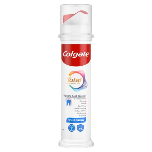 Read MoreThe Colgate Total Active Prevention Teeth Whitening Toothpaste is clinically proven and actively prevents many oral health problems with 24h antibacterial protection*. *With 2x daily brushing after 4 weeks