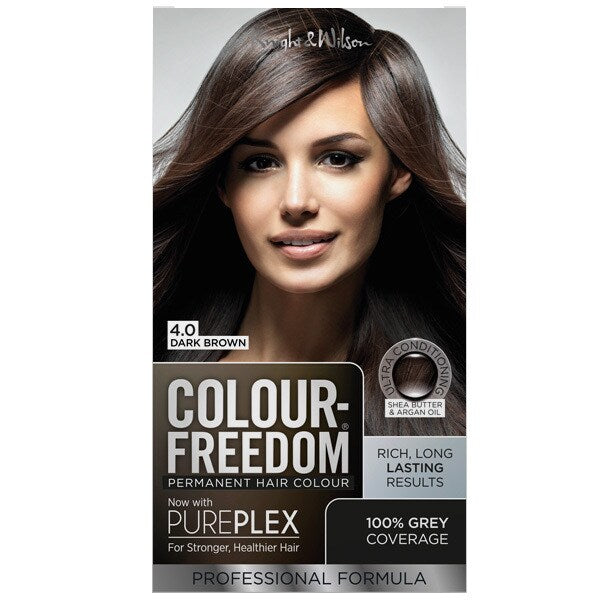 your colour freedom shade is formulated with pureplex bond reconstructing technology for ultimate colour performance and incredible condition shine boost complex with argan oil and shea butter nourishes your hair and adds lustrous shine includes anti fade technology for long lasting colour safer colouring at home improved suppleness volume and shine ultimate colour performance and incredible condition 100 grey coverage natural looking permanent colour result every time colour freedom is a luxury salon professional permanent hair colour with genuine pureplex bond reconstructing technology for stronger healthier hair enjoy ultimate colour performance and incredible condition the new colour freedom permanent hair colour range delivers rich longlasting results with radiant naturallooking hair colour each colour shade is infused with argan oil and shea butter through our unique shine boost complex which leaves your hair extra nourished and full of lustrous shine our anti fade technology means your colour lasts and your glossy healthy colour lasts for the first time our salon professional pureplex bond reconstructing technology has been included with each of our luxurious colour shades meaning healthier colouring and healthier hair pureplex repairs and strengthens all hair types by restoring lost amino acids and rebuilding the natural keratin structure leaving you hair hydrated revitalised with improved suppleness volume and shine switch to colour freedom for safer colouring at home and for healthier hair