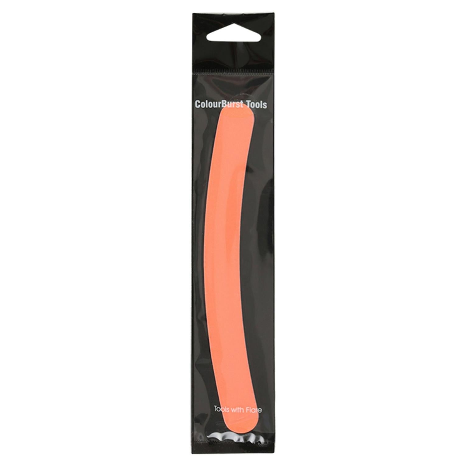 This ColourBurst Tools item is designed to assist with precision shaping and smoothing in baking or crafting projects. As part of the 'Tools with Flair' range, this specific curved tool aids in achieving refined edges and surfaces on materials like icing or dough. Its vibrant orange colour makes it easy to locate in your toolkit.