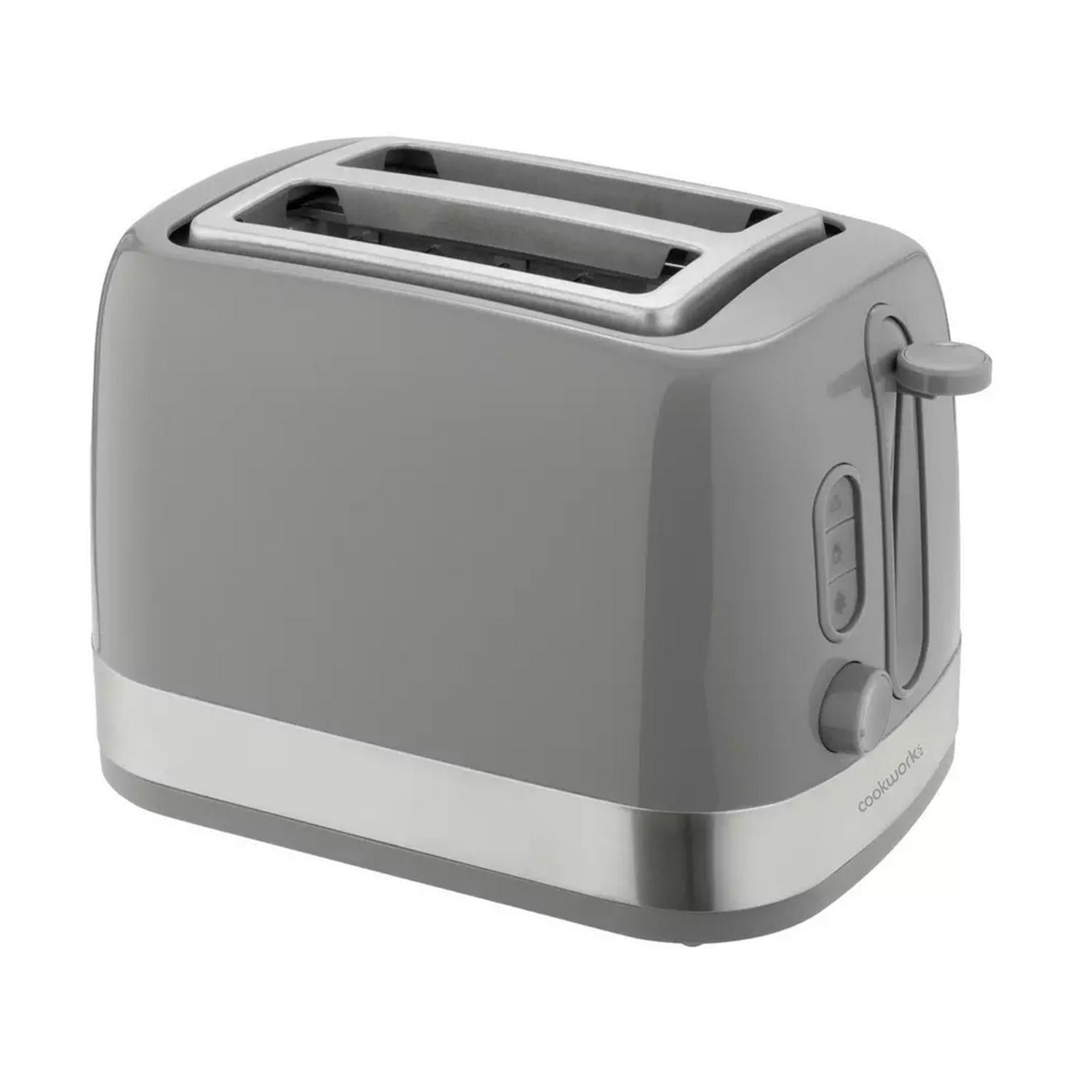 This Cookworks 2 slice toaster, finished in grey plastic, is ideal for crafting your perfect slice for breakfast or warming crumpets. You can monitor progress using the handy illuminated lift-and-see feature integrated into the design. It offers versatile options for browning bread exactly how you like it.