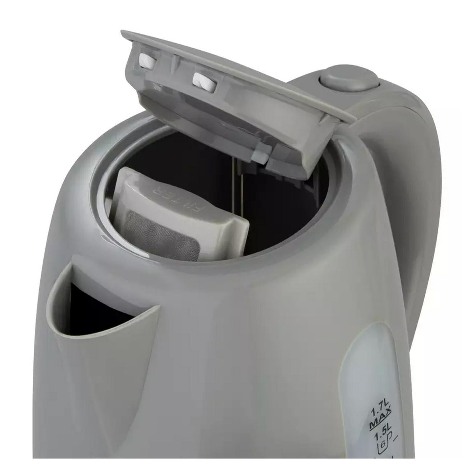 Read MoreEnjoy a quick cuppa with this grey Cookworks kettle. Get the teas in for visitors fast with the 1.7 litre capacity and the rapid boil. And the quiet boil feature means no disturbing sleeping beauties. Keep an eye on the water level with the illuminated water window. The boil dry protection and overheat protection will kick in and help prevent damage if it's turned on accidentally when empty. For added ease, it's cordless, so you don't have to worry about wires getting in the way.