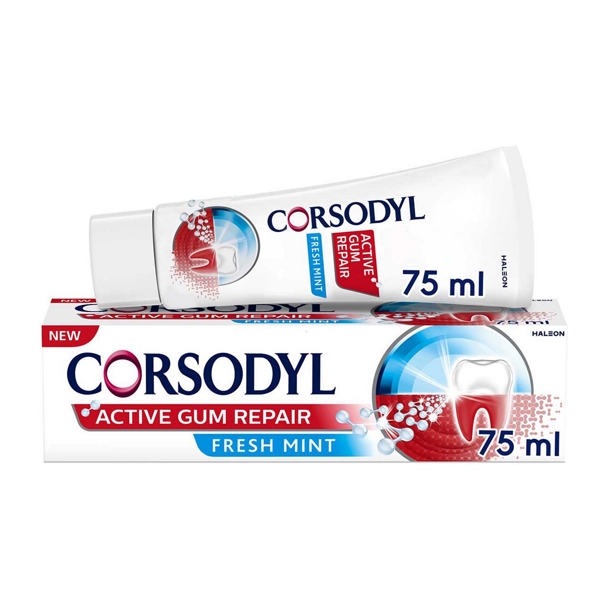 Corsodyl Active Gum Repair Fresh Mint Toothpaste helps reverse early gum problems by targeting plaque bacteria, the main cause of early gum disease. Designed by gum experts, it is clinically proven to actively remove plaque bacteria, to help repair inflamed, swollen & bleeding gums in just one week*. Plus, its flavour enhancing technology with a blend of purposefully selected flavour ingredients helps to balance the overall taste; combined with specific cooling materials for a fresh experience.