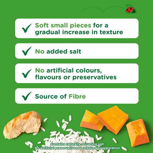 This Cow & Gate jar provides a satisfying savoury option for babies weaning from 8 months onwards. This blend combines pumpkin, chicken, and rice into a textured family favourite. It is designed to complement a varied weaning diet as your little one grows.