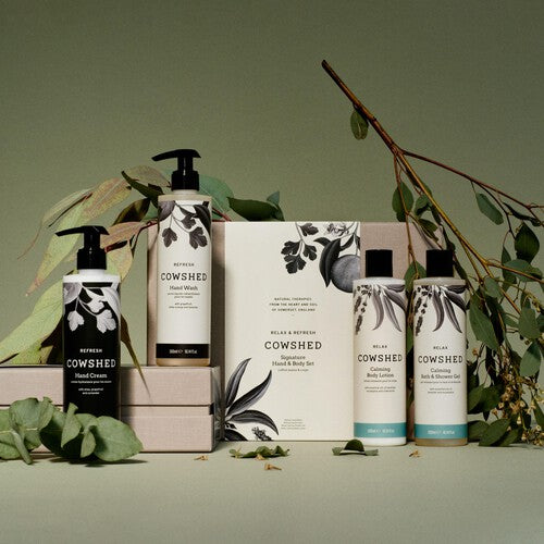 Read MoreCelebrating our most popular essentials, our Signature Hand & Body set is sure to put a spring back in your step. Each product has a bespoke blend of essential oils, tailored to enrich the body and mind. Our Relax mood helps the process of unwinding, while Refresh revitalises tired hands. In both style and function, these Cowshed favourites complete any bathroom.