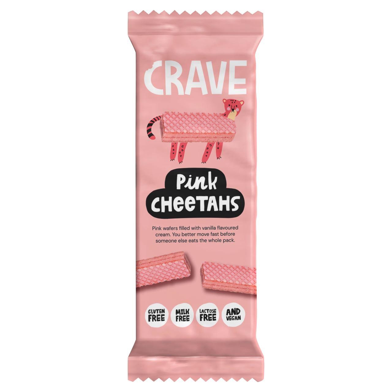 Crave Pink Cheetah Wafers offer a playful and flavourful treat with significant dietary considerations. These pink wafers are filled with a sweet, vanilla-flavoured cream centre for a satisfying taste. They are formulated to be accessible to a wide range of consumers with specific dietary requirements.