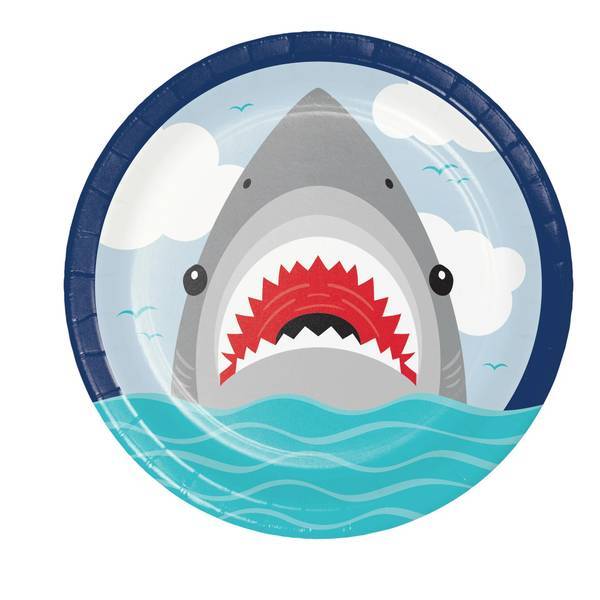 These paper shark plates provide practicality without sacrificing decorative appeal for your table setting.