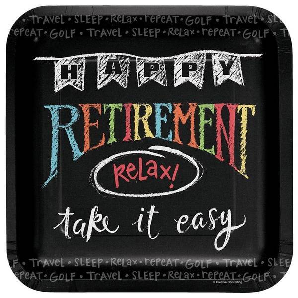 These attractive plates offer a themed and straightforward serving solution for your retirement party supplies.