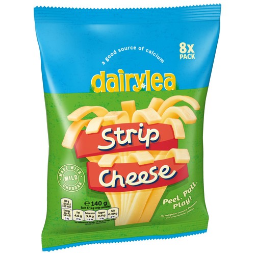 These Dairylea Strips are created by heating and blending milk and mild cheddar cheese for a creamy flavour profile. They offer flexible fun, allowing for creative uses during meals or as a convenient on-the-go cheese snack. This product contains no artificial colours, flavours, or preservatives.