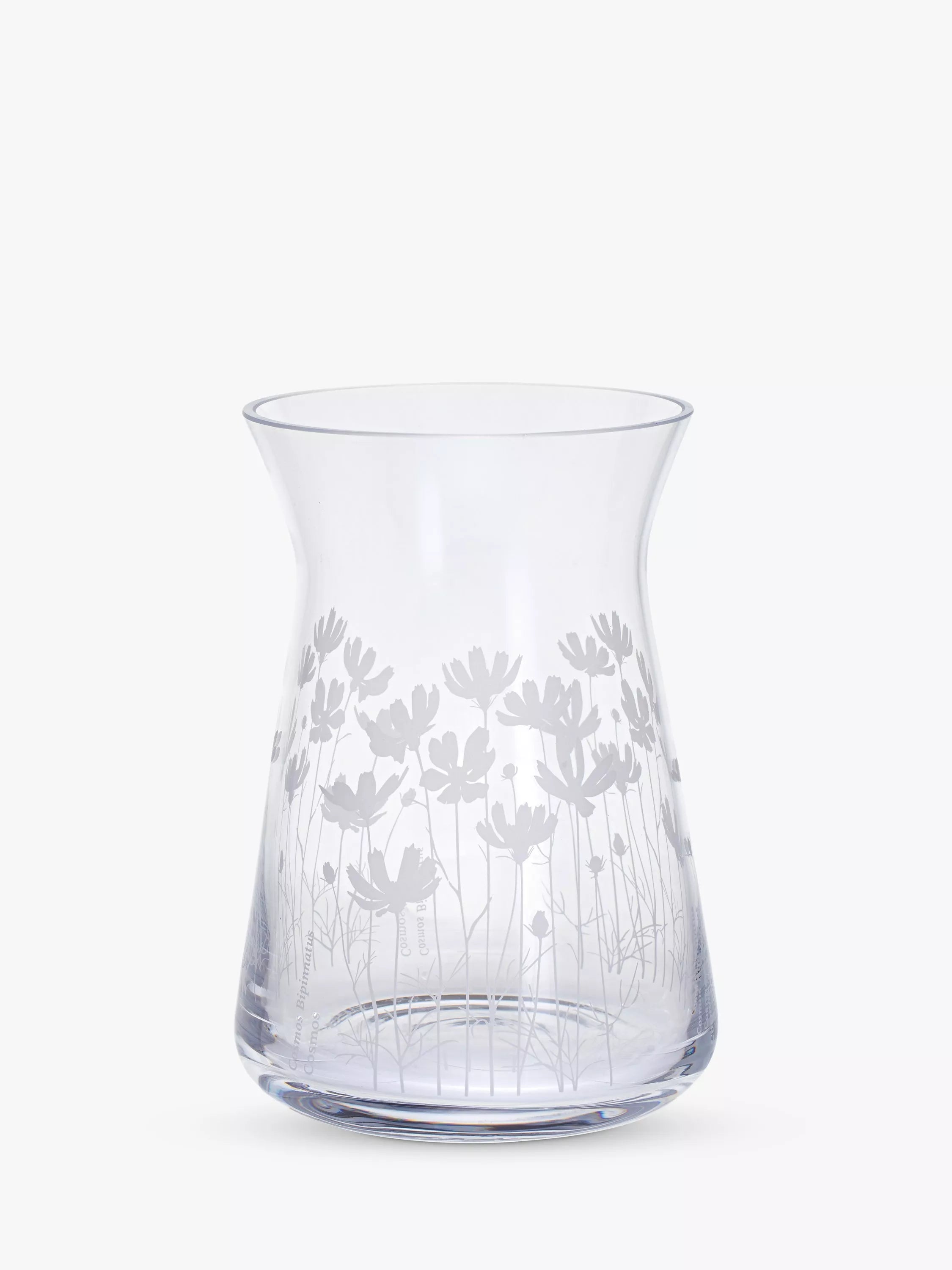 Elevate your home décor with the exquisite Dartington Crystal Bloom Cosmos Vase, a stunning piece handcrafted in the UK. This elegant vase, perfect for adding a touch of sophistication to any room, beautifully displays flowers of all kinds. Its delicate etched design adds a touch of charm.