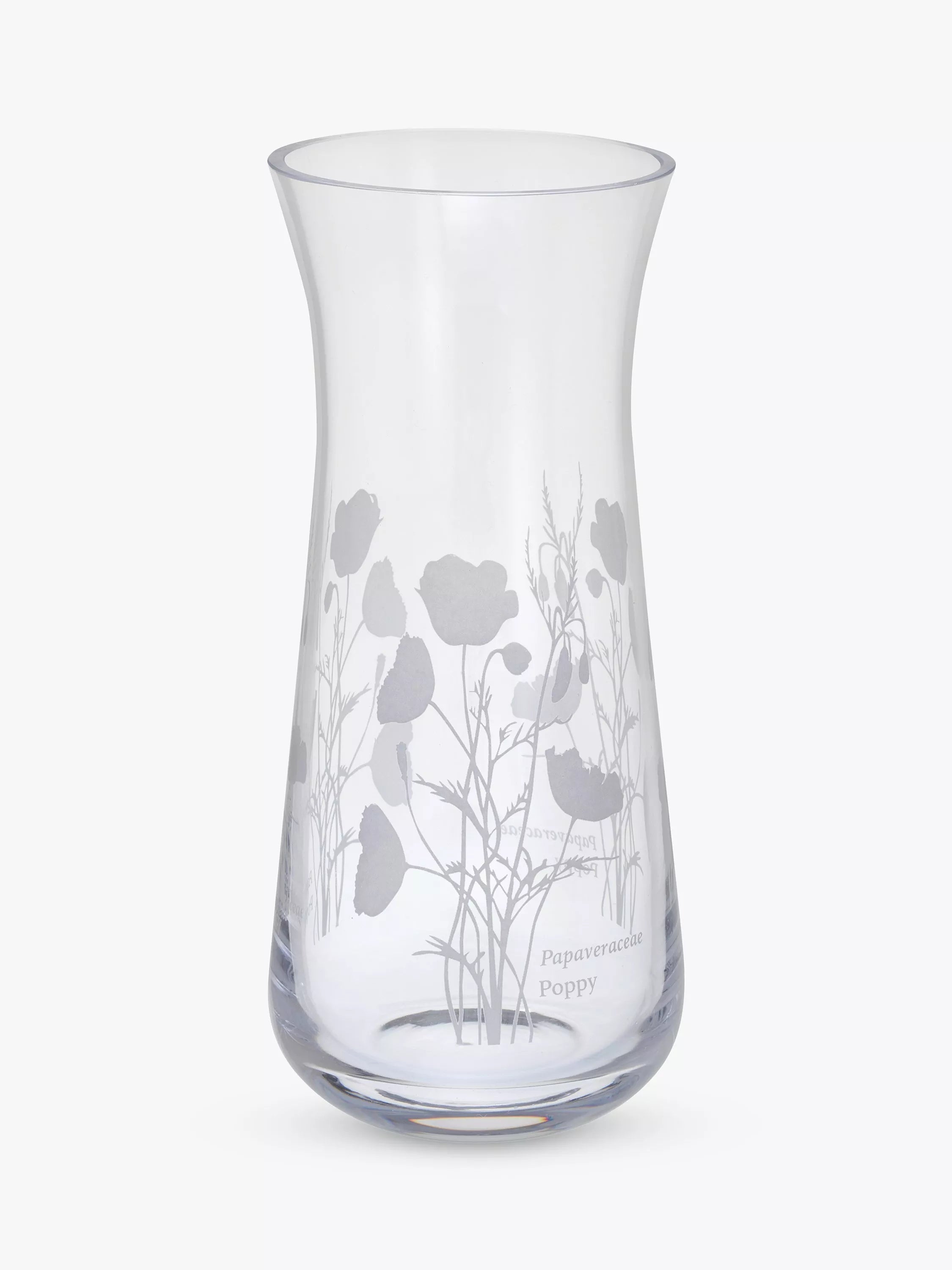 Pinched towards the rim, this small flared vase is decorated with elegant silhouettes of Poppies.
