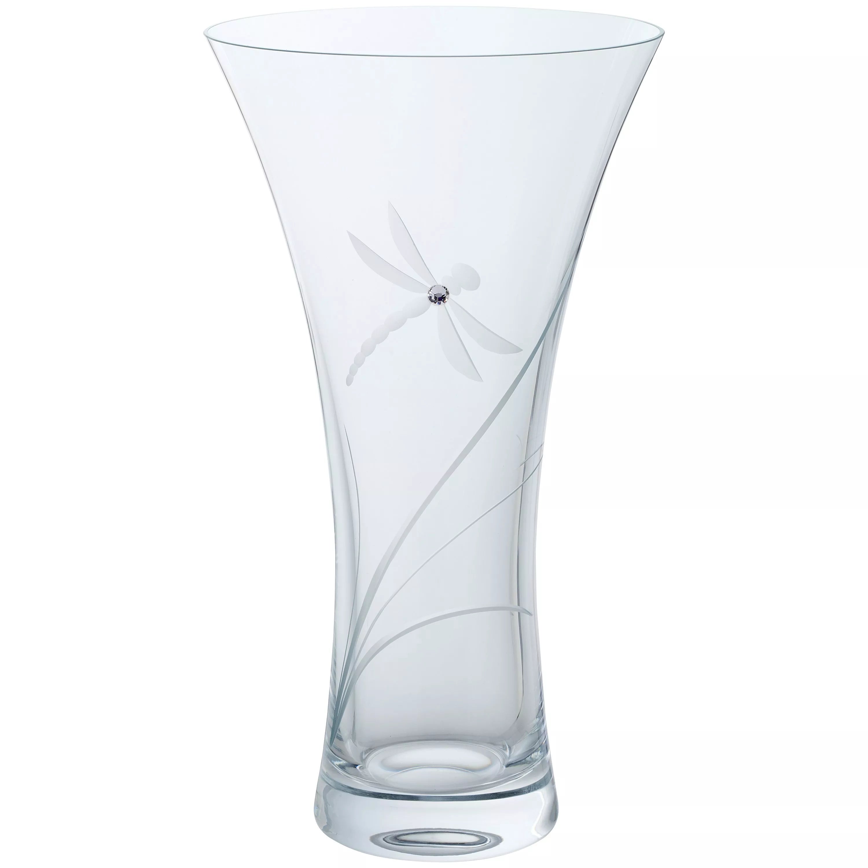 This beautiful crystal Dartington vase is hand cut and features Swarovski crystals in the shape of a dragonfly in flight. The flared shaped of the vase is perfect for showcasing fresh floral arrangements.