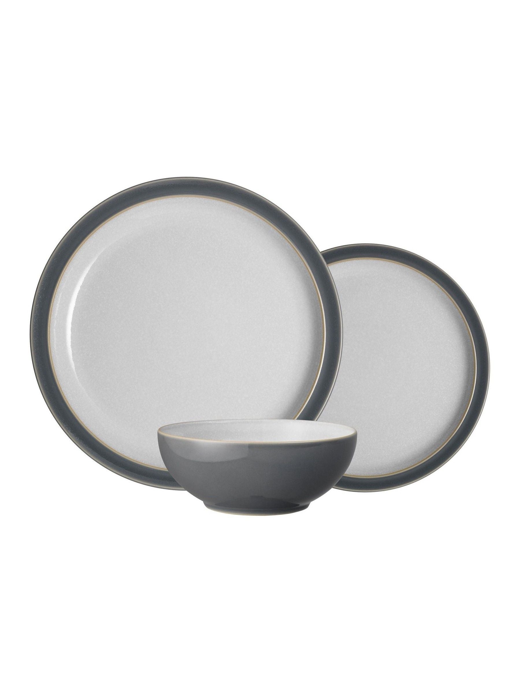 Denby Elements Fossil Grey is perfect for a timeless yet contemporary kitchen and dining style. Its modern glazes and simple shapes make it great for everyday life and perfect for new homeowners. The 12 Piece Set is the perfect way to start your Denby Elements Fossil Grey Collection. Set Contains: 4x Dinner Plate: 26.5cm, Medium Plate: 22cm, Cereal Bowl: 17cm. Also available in Fossil Grey: Set of 4 Mugs, Set of 4 Pasta Bowls. Hand-Crafted at the Denby Pottery factory from high quality, locally sourced clay. Expertly glazed to enhance durability. Denby 10 Year Guarantee. Oven, microwave, dishwasher, and freezer safe.