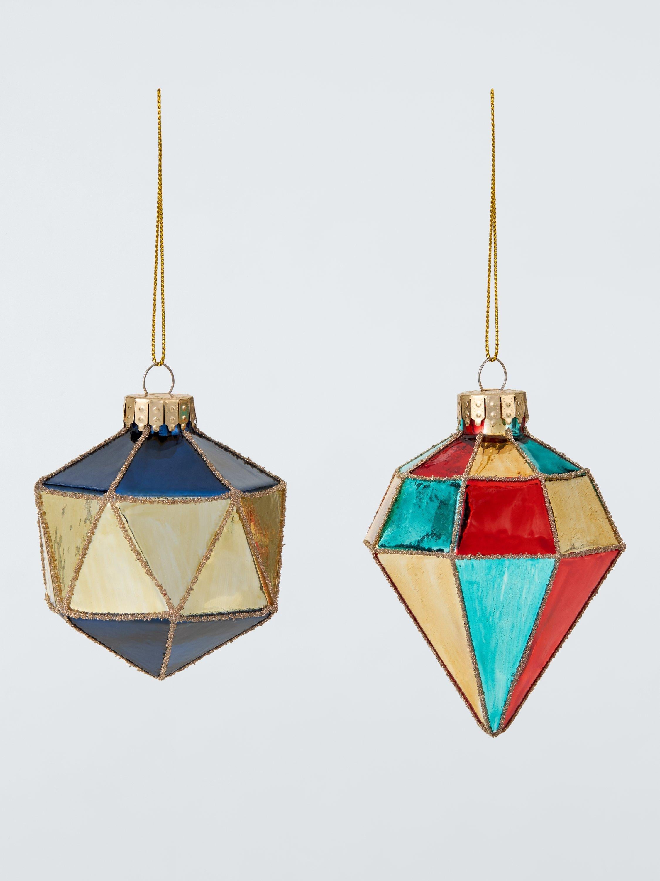 John Lewis offers this essential box containing nine decorative glass baubles for your Christmas display this season. Each ornament features a distinctive diamond drop shape, providing an elegant and unique visual element for your tree. These colourful additions ensure a sophisticated, striking look.