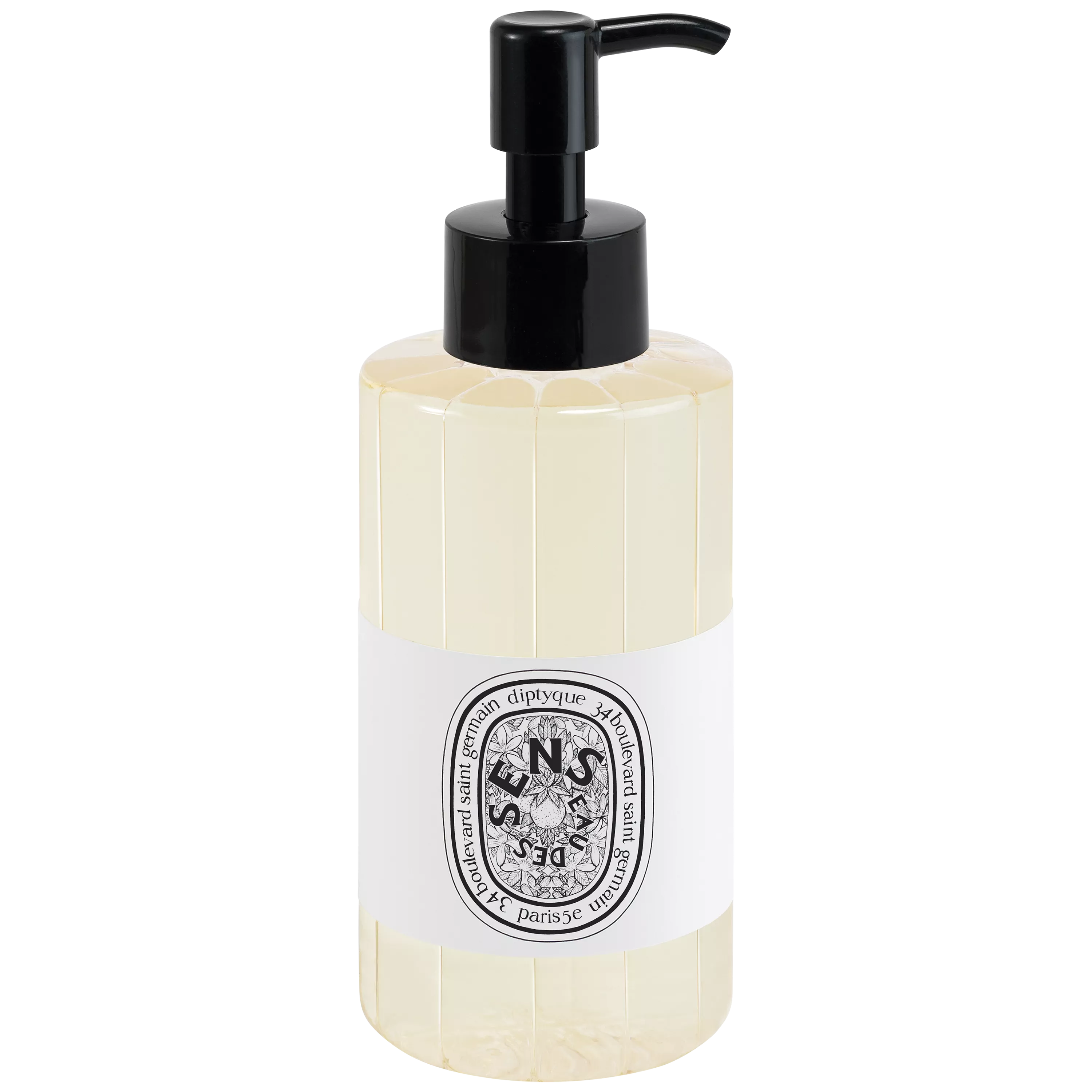 Under the waterfalls at the garden of the Hesperides and when wet, the Eau des Sens cleansing hand and body gel transforms into a fragrant foam that thrills the skin.