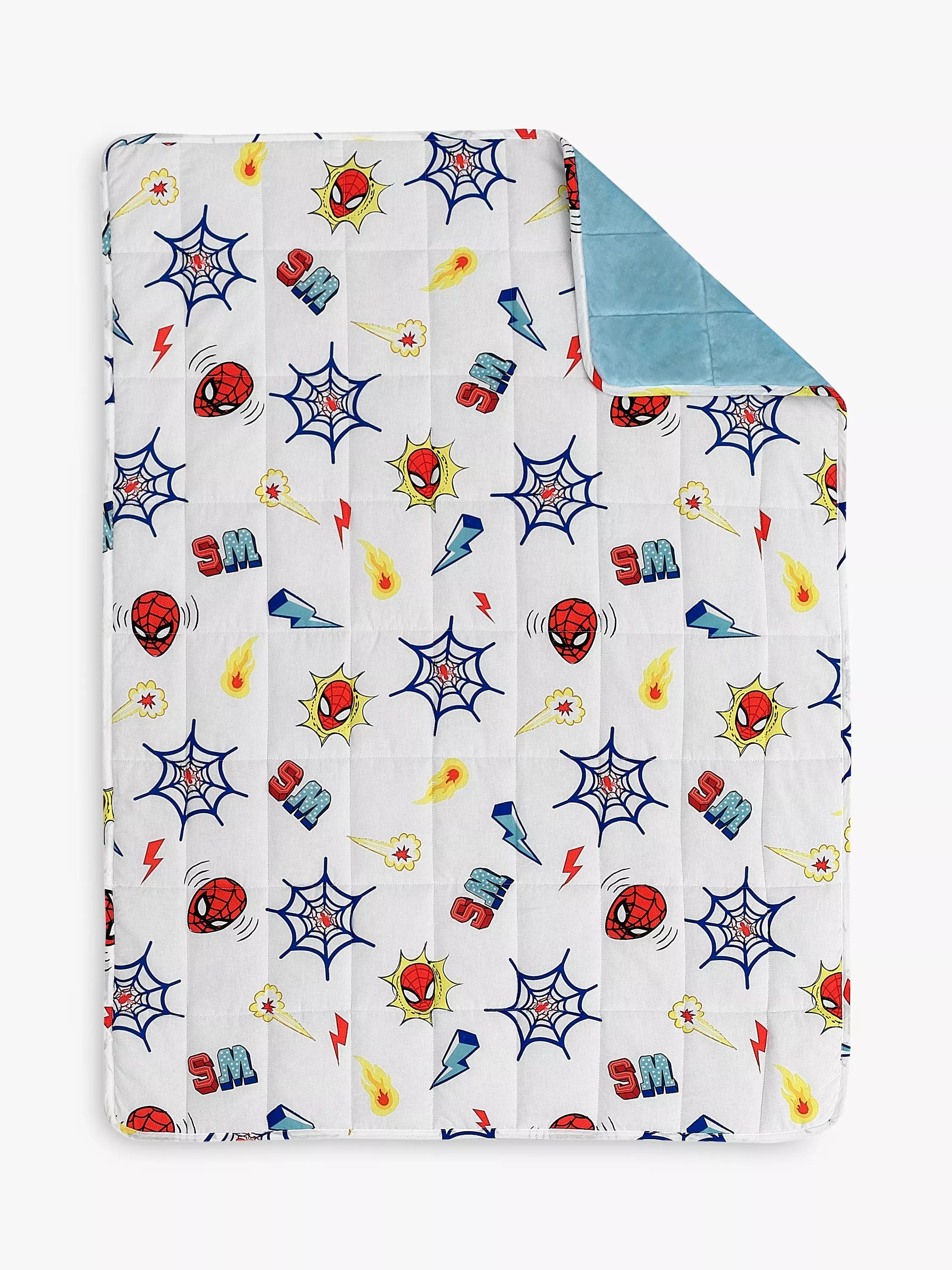 Help your child drift off to sound, comfortable sleep with the amazing Spiderman. This super-soft, smooth blanket, is specially weighted, to create a calming 'hug' effect for your little sleeper. The unique filling creates deep touch pressure across the whole body, producing a calming effect, aiding a sense of wellbeing and restfulness. Decorated with cool Spiderman icons and mask design, it will make bedtime special for your little one, feeling cosy & secure alongside their favourite Disney action hero.