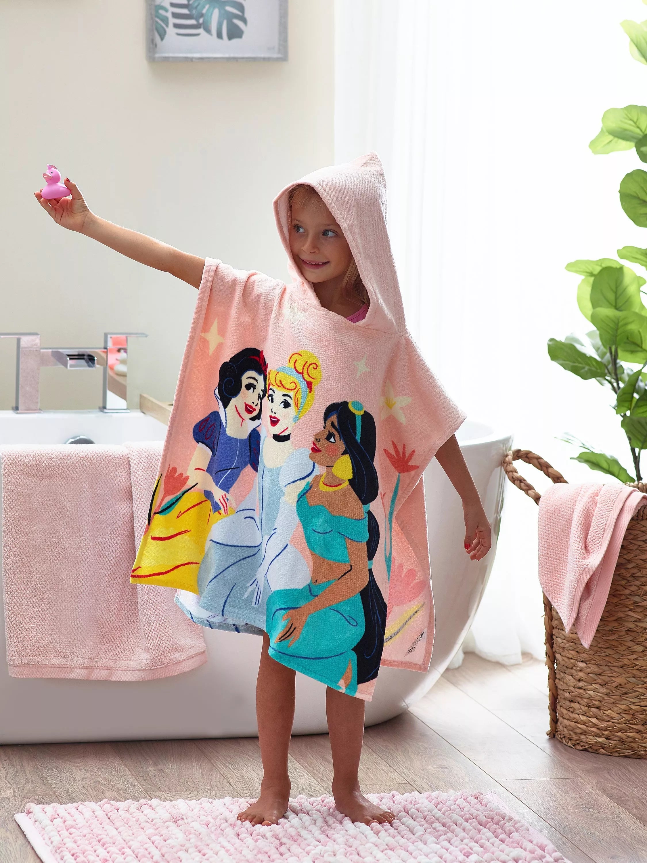 Wrap up your little one in this fun hooded Poncho towel from Disney. Cinderella, Snow White and Jasmine all feature on the front of this sweet hooded poncho and on the back, Cinderella is watching the clock.