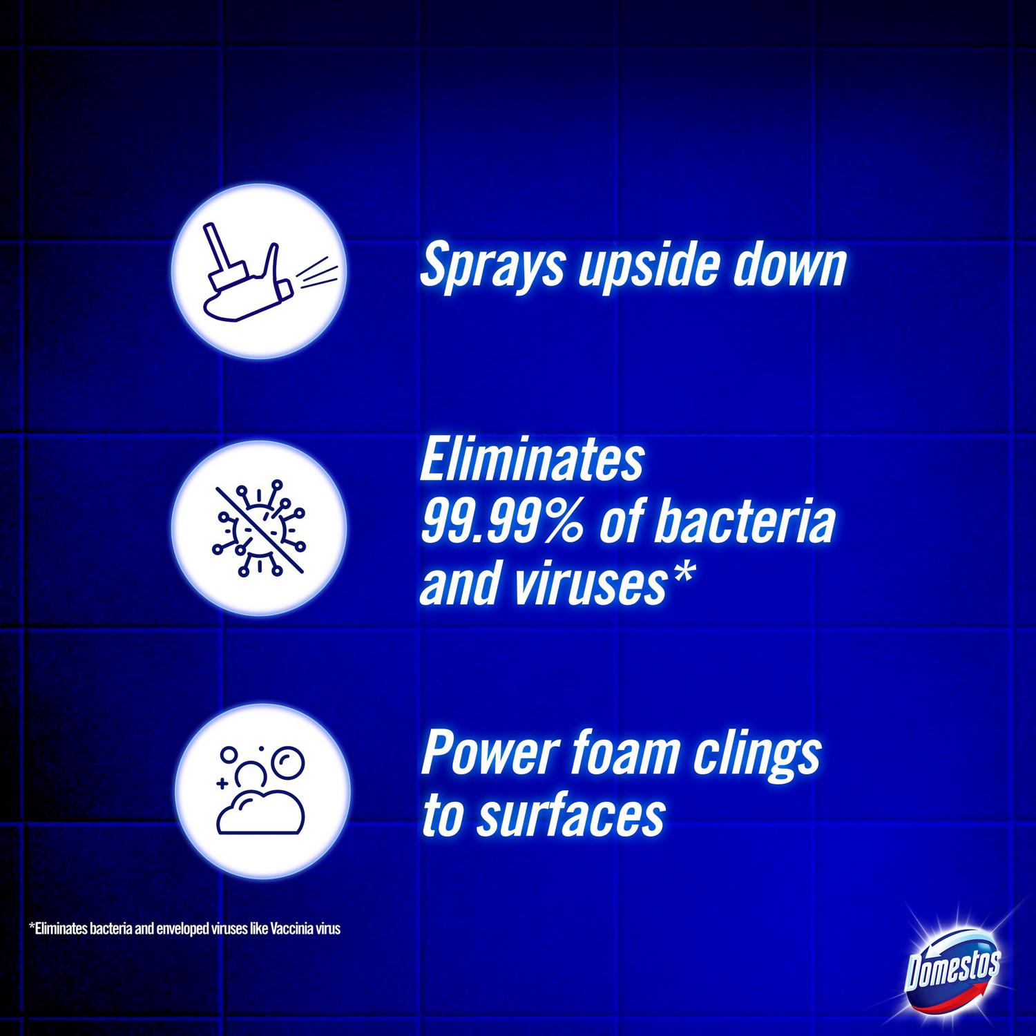 This Domestos Power Foam Floral Burst spray is formulated to eliminate 99.99% of germs within your toilet and bathroom environments. Its improved foam clings effectively to all surfaces, enabling a deep clean even in the most difficult to reach locations. This handy cleaner makes routine maintenance significantly more convenient.