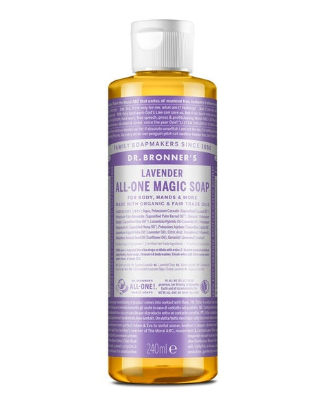 aqua potassium cocoate saponified coconut oil potassium palm kernelate saponified palm kernel oil potassium olivate saponified olive oil glycerin lavandula hybrida lavandin oil potassium hempseedate saponified hemp oil potassium jojobate saponified jojoba oil lavandula angustifolia lavender oil citric acid tocopherol vitamin e helianthus annuus seed oil sunflower oil geraniol limonene linalool certified organic ingredients certified fair trade ingredients from pure essential oils allergen information contains coconut oil