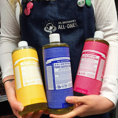 Dr. Bronner's 18-in-1 Pure-Castile Soaps are good for just about any cleaning task. Face, body, hair & dishes, laundry, mopping, pets, clean your house and body with no synthetic preservatives, detergents or foaming agents - none!