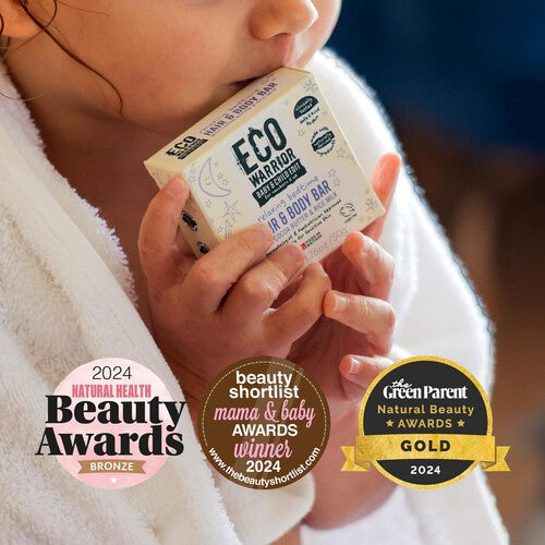 This Eco Warrior bar is specifically formulated for a calming bedtime routine for babies and children. It functions as both a hair and body wash in one convenient bar format. The formulation uses natural ingredients intended to gently cleanse delicate skin and hair.