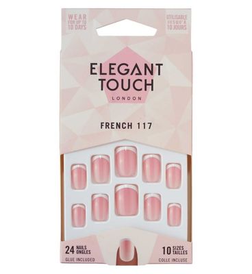 Achieve a salon-quality French manicure instantly with Elegant Touch French Pink 117 press-on nails. This set from Elegant Touch London provides a classic, neat aesthetic without the drying time associated with polish. These durable false nails are designed for straightforward application at home.