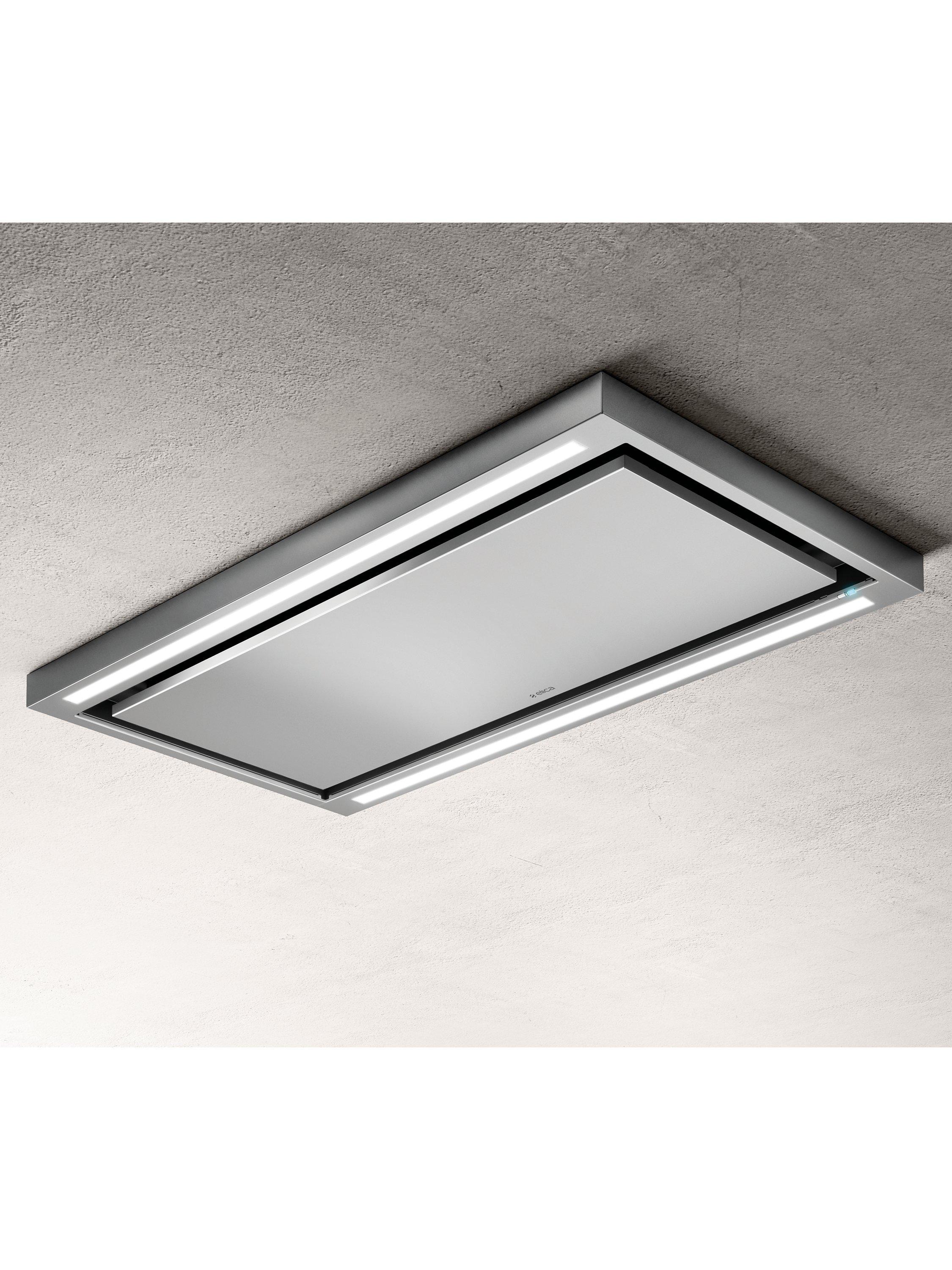 This Elica Cloud Seven 90cm Cooker Hood offers powerful extraction in a sleek stainless steel ceiling design for modern kitchens. Its flush fitting build ensures a contemporary, unobtrusive look positioned above your hob area. Enjoy superior air quality management effortlessly with this advanced unit.